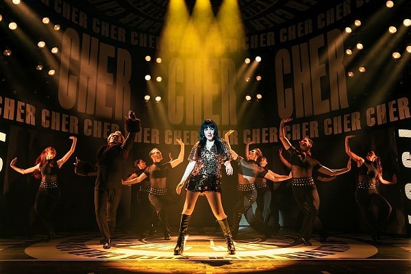 The evening dances and sings through Cher’s life in chronological order. The three Cher performers represent three life stages. Pamina Lenn as “Babe” portrays Cher in the 1950s and 1960s. Hannah Lese as “Lady” represents Cher in the 1970s. And Sophie Berne as “Star” embodies Cher in the 1980s and 1990s. From mother Jackie, who tells her little Cher that she isn’t an outsider but something very special, to the life-changing relationship with Sonny Bono, the rollercoaster of a career in music, show, television, film, and theater, to the nagging sense of aging. The only real flaw is that one of the three leads occasionally slips into a caricatured Cher impression that nudges just past the silly line. Too hoarse, too throat-centered—like the standard bad Cher impressions you’ve seen. Fortunately she doesn’t always do it. And fortunately the other two are superb.