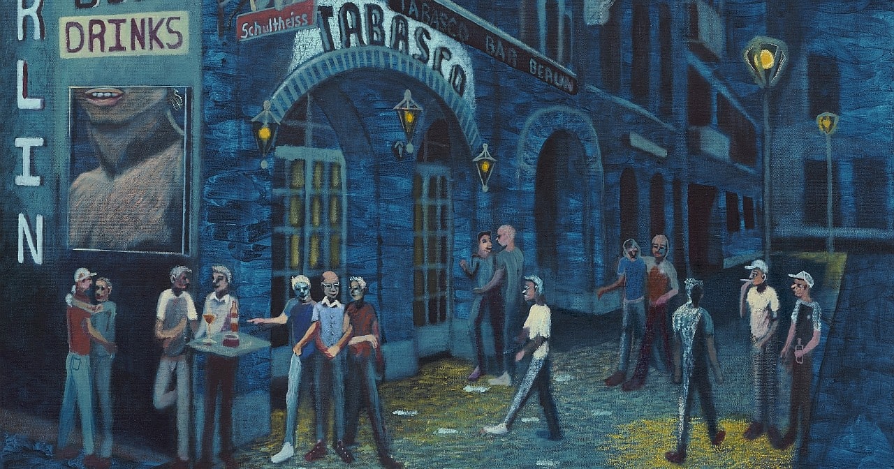 What sets the Bonn exhibition apart from the Berlin one are the many high-caliber artworks on display. For instance, pieces by Otto Dix or Jeane Mammen allow for divergent perspectives on Berlin’s sex work of the 1920s. Yet contemporary works broaden the understanding as well: Ryan Huggins’s blue-toned paintings depict well-known male-sex-work bars in Berlin and Düsseldorf as complex spaces of community and connection. A standout is Pauli Schlipf’s paper reconstruction of Berlin’s green urinal known as the “Café Achteck,” which many men used as a public yet protected cruising site for paid and unpaid sex. Vincent Wechselberger’s photographs from the “Ready” series depict queer sex workers and their routines—self-determined, not framed as victims.